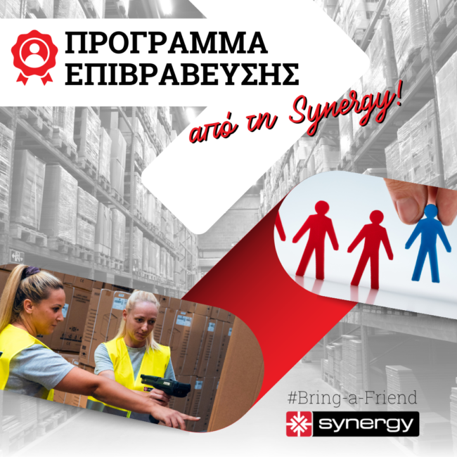 H Synergy εφαρμόζει το πρόγραμμα Bring a Friend που επιβραβεύει τους υπαλλήλους της που θα συστήσουν έναν υποψήφιο εργαζόμενο.